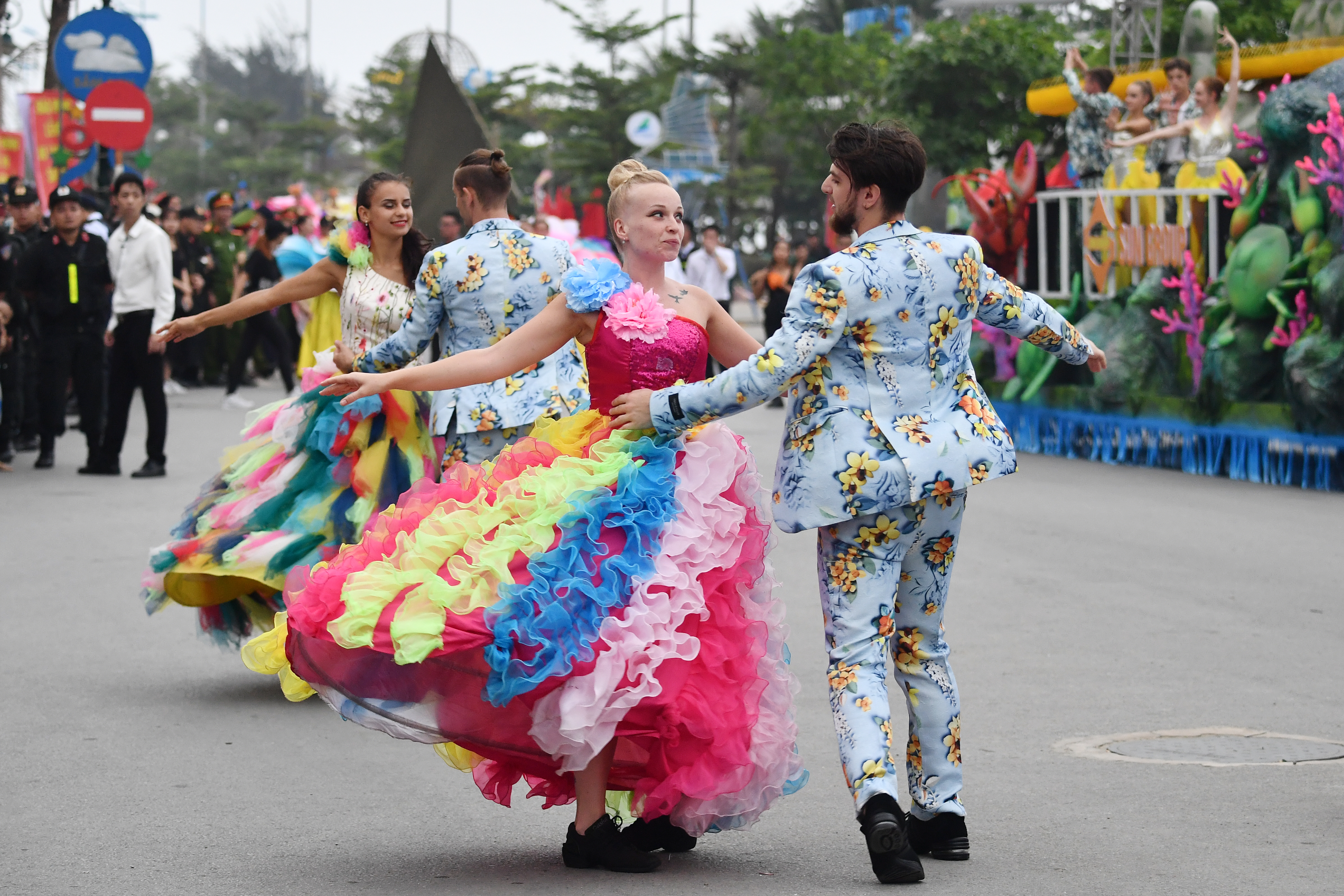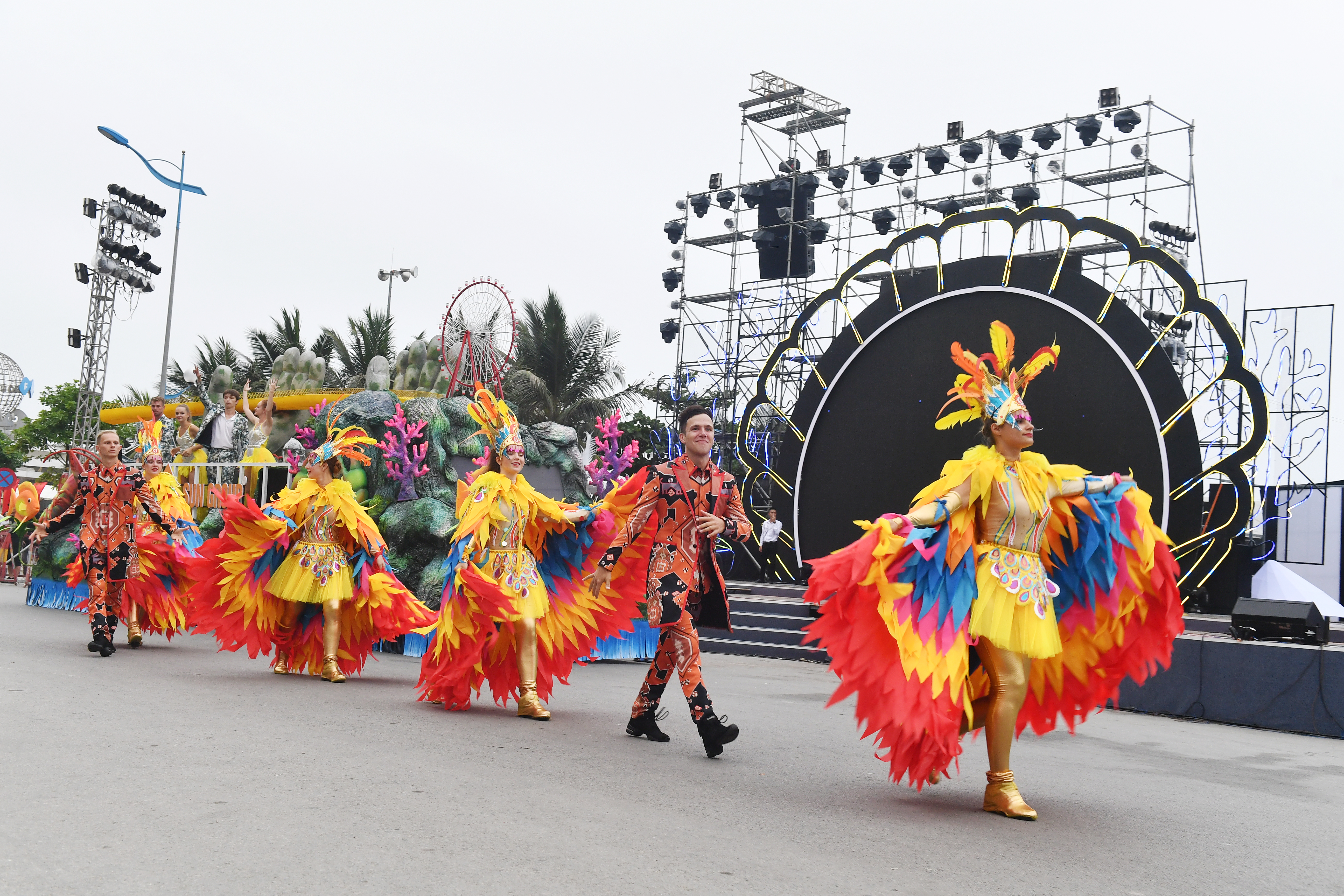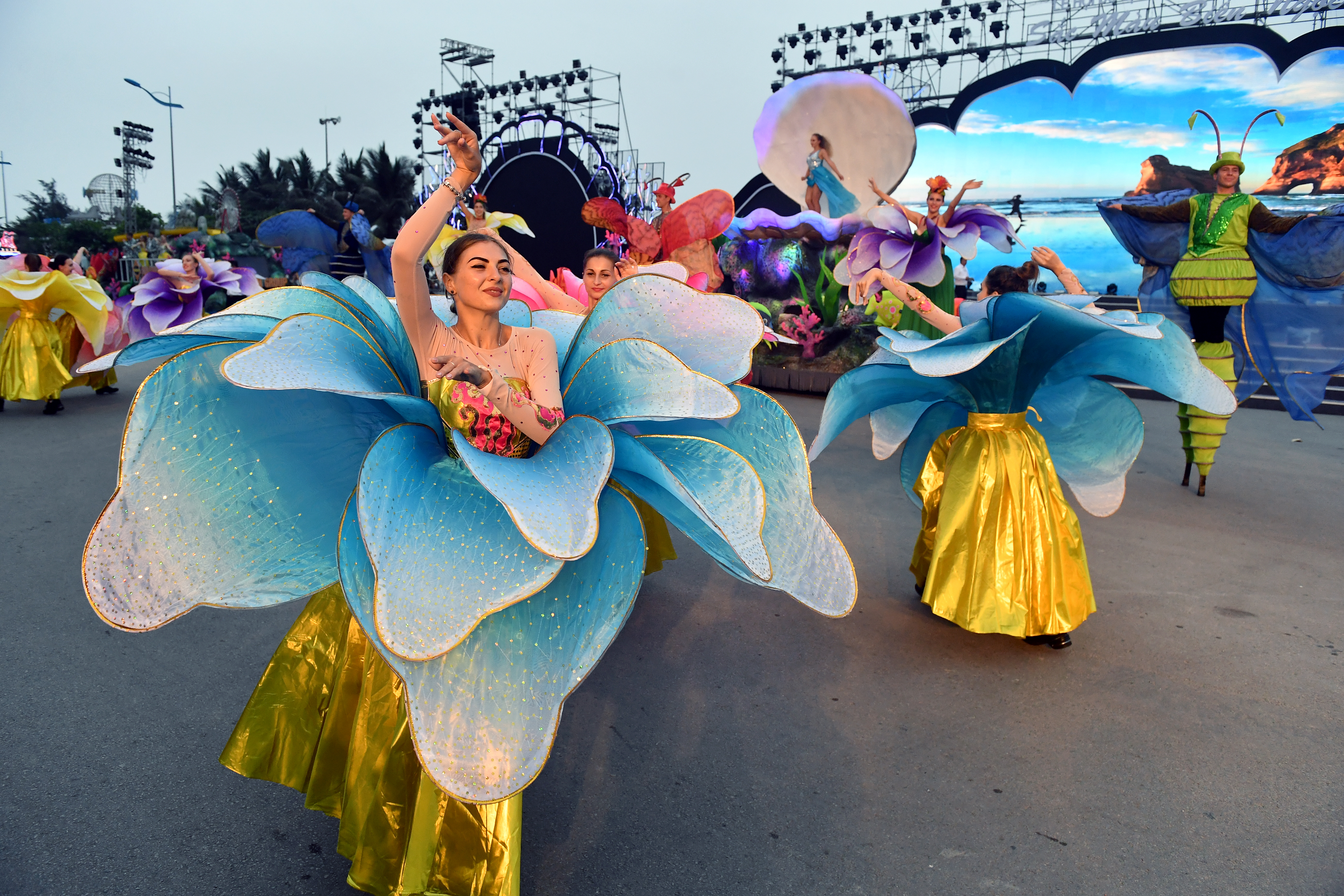 Trên tuyến đường ven biển dài 2,1km, đoàn diễu hành đã dừng biểu diễn trên các sân khấu tại 3 điểm, gồm: ngã ba đường Hai Bà Trưng- Hồ Xuân Hương, ngã ba Lê Thánh Tông- Hồ Xuân Hương và ngã ba Tây Sơn - Hồ Xuân Hương. Tại bất cứ điểm biểu diễn nào, Carnival cũng khuấy động không khí bằng những tiết mục nghệ thuật đường phố độc đáo cùng âm nhạc rộn rã và nhận được sự cổ vũ nồng nhiệt của du khách và người dân. Hai xe hoa được thiết kế lộng lẫy với những hình ảnh ấn tượng mang hơi thở của đại dương như sóng biển, san hô, các sinh vật biển sinh động cùng với sự xuất hiện của những diễn viên xinh đẹp trong trang phục lễ hội biển càng khiến khán giả thêm phấn khích, hào hứng.