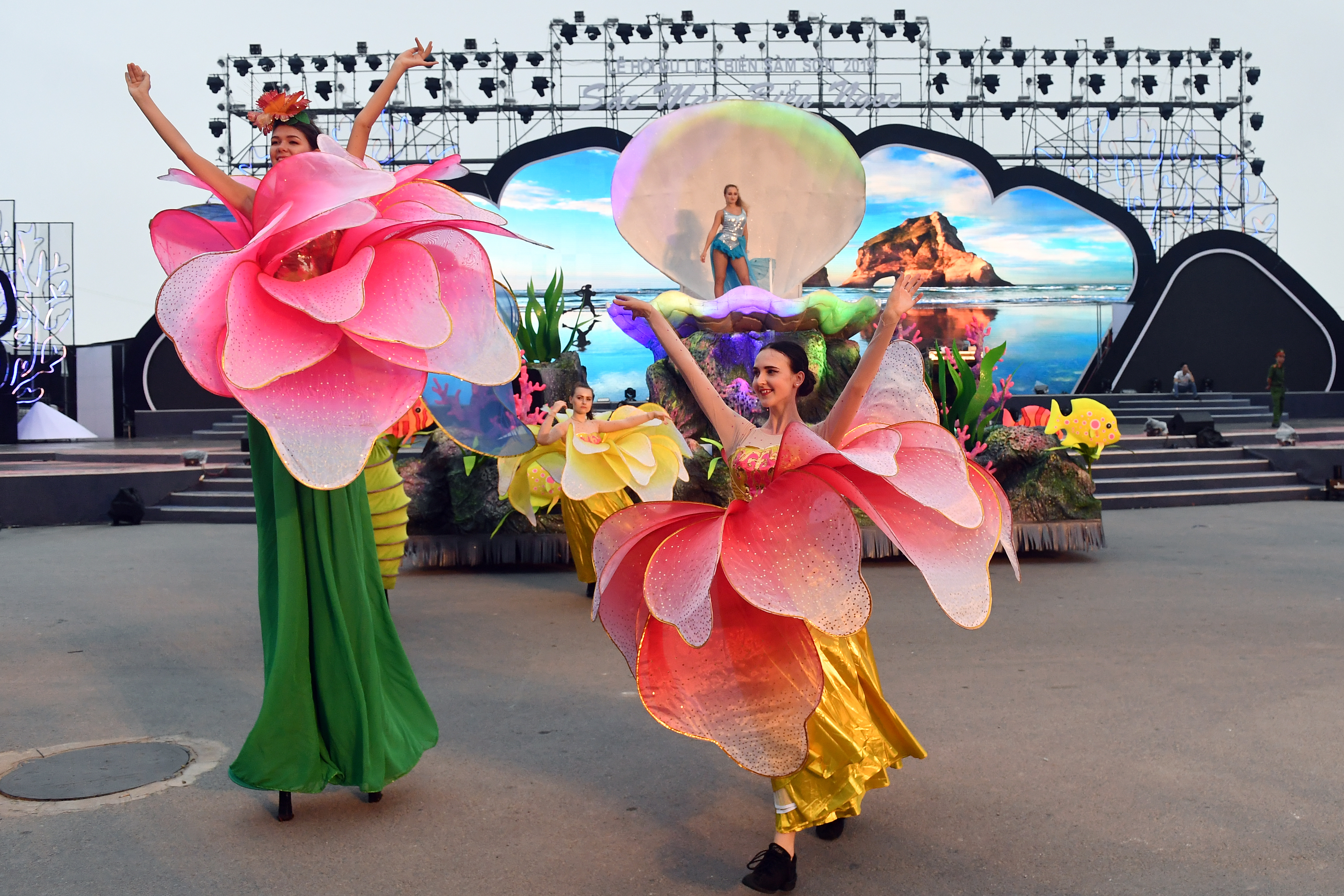 Những diễn viên xinh đẹp trong trang phục lễ hội biển khiến nhiều người thêm hào hứng