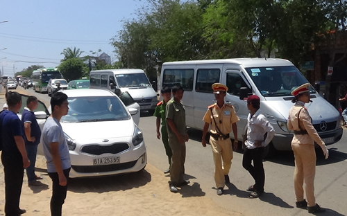 Gần trưa 1/5, CSGT thành phố Phan Thiết lập tổ tuần tra kiểm soát trên tuyến đường từ trung tâm ra Mũi Né. Tại khu vực đường Nguyễn Thông, cảnh sát ra tín hiệu dừng ôtô 7 chỗ được cho là chạy quá tốc độ.