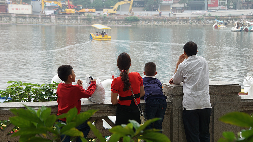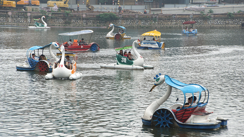 Trên hồ, mọi người vẫn hăng say đạp vịt.
