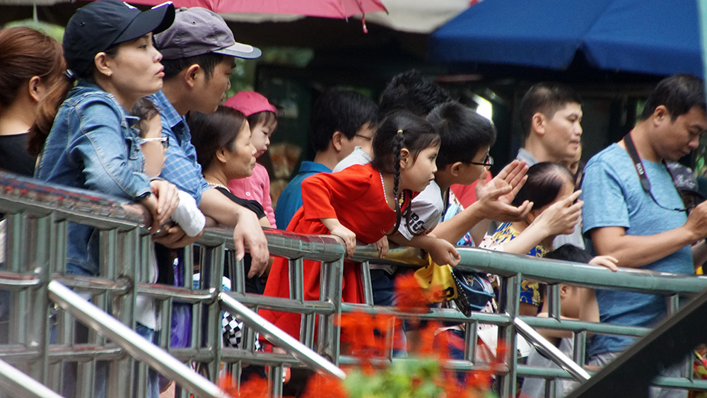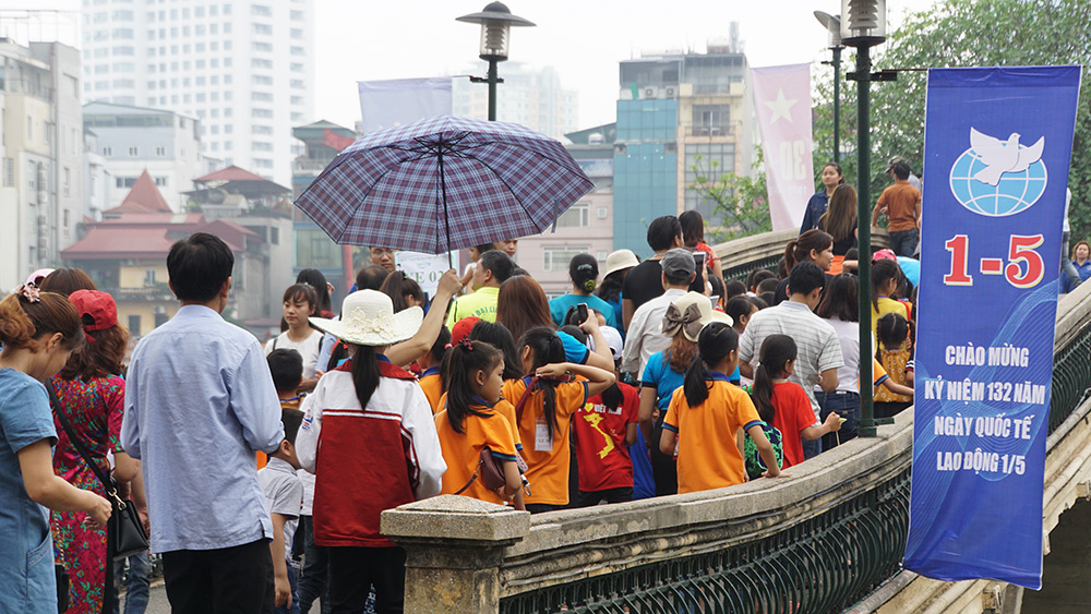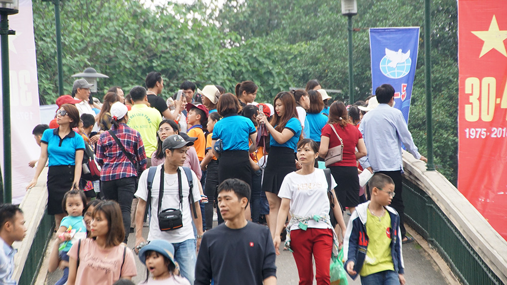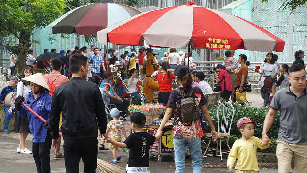 Hàng loạt các gia đình tranh thủ cho con đi chơi trong ngày đầu tiên của dịp nghỉ lễ.
