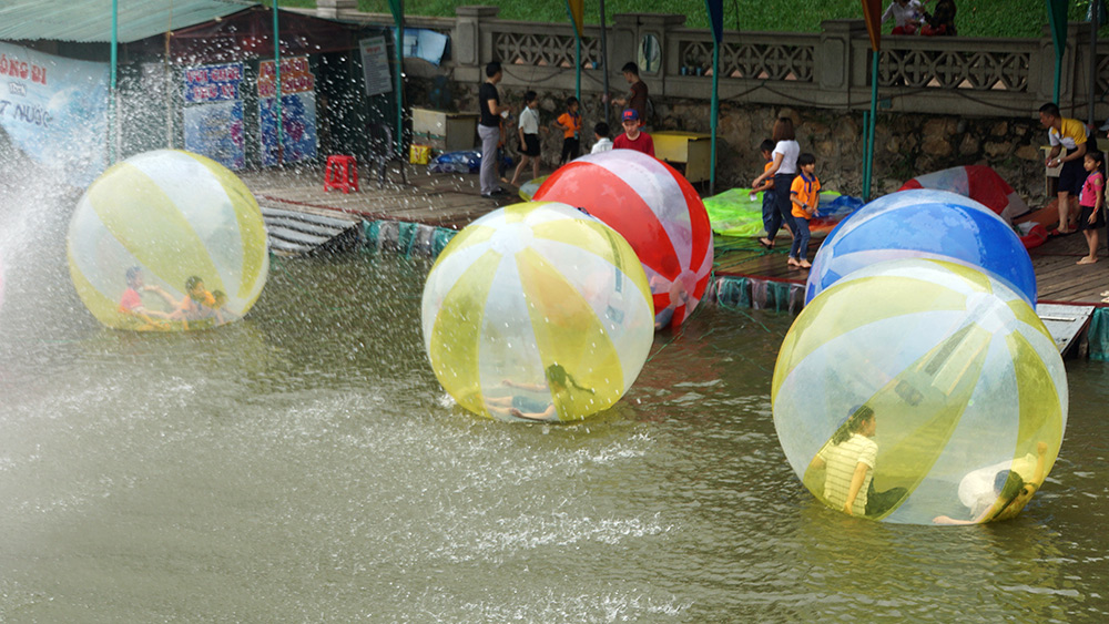 Trẻ em vẫn hào hứng chơi bóng nước.