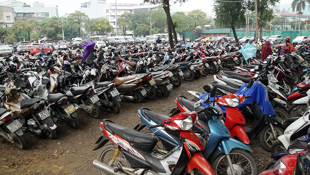 Bãi để xe các khu vui chơi luôn trong tình trạng quá tải.