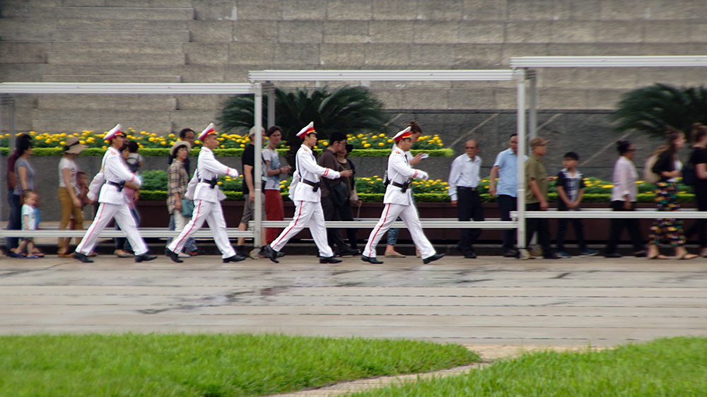 Tại lăng Chủ tịch Hồ Chí Minh, dòng người không quản mưa gió vẫn đến tham quan.