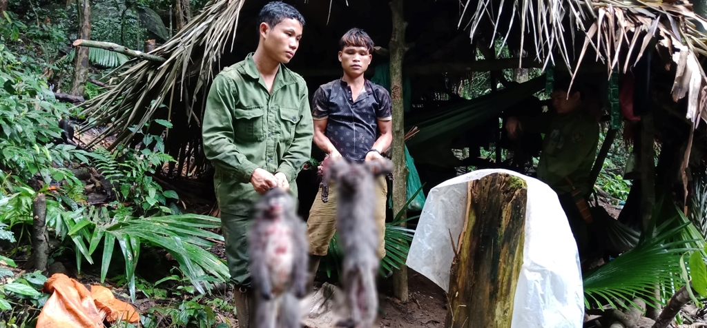 Theo ông Cường, chiều 11/1, lực lượng kiểm lâm và nhóm bảo vệ rừng chuyên trách của Vườn quốc gia Phù Mát đi tuần tra như thường lệ thì phát hiện một nhóm thợ săn gồm 5 người săn bắt voọc.