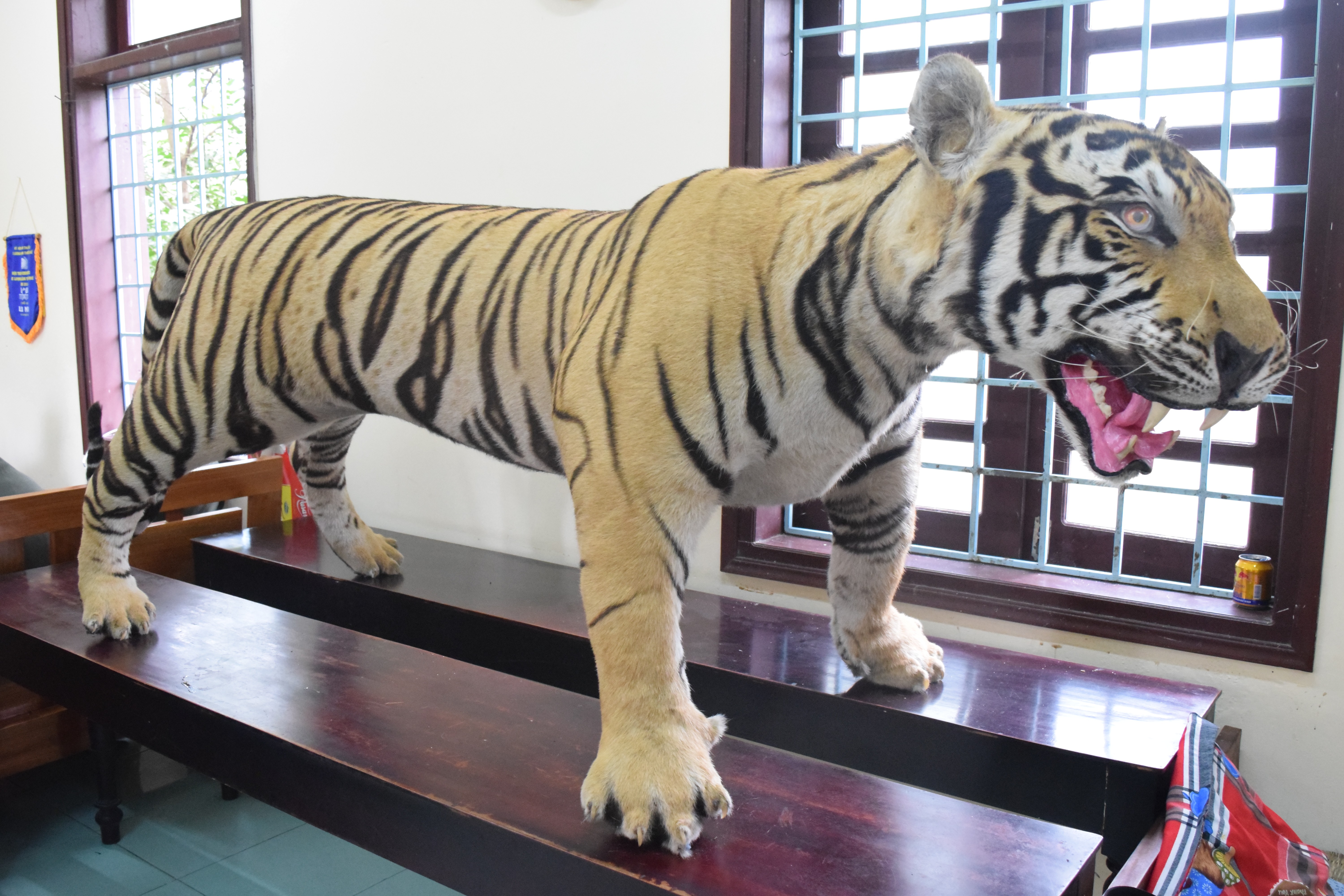 Bộ da hổ nhồi bông bị vận chuyển trái phép trên xe khách.
