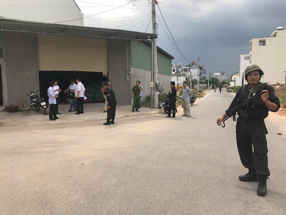 Lực lượng chức năng kiểm tra kho hàng của công ty Hasan.