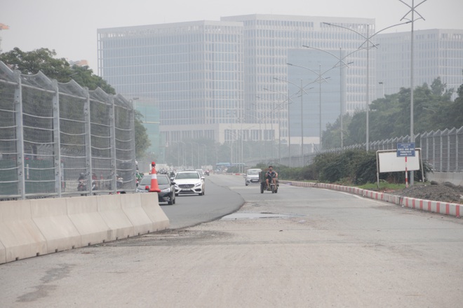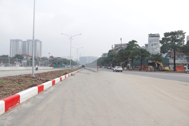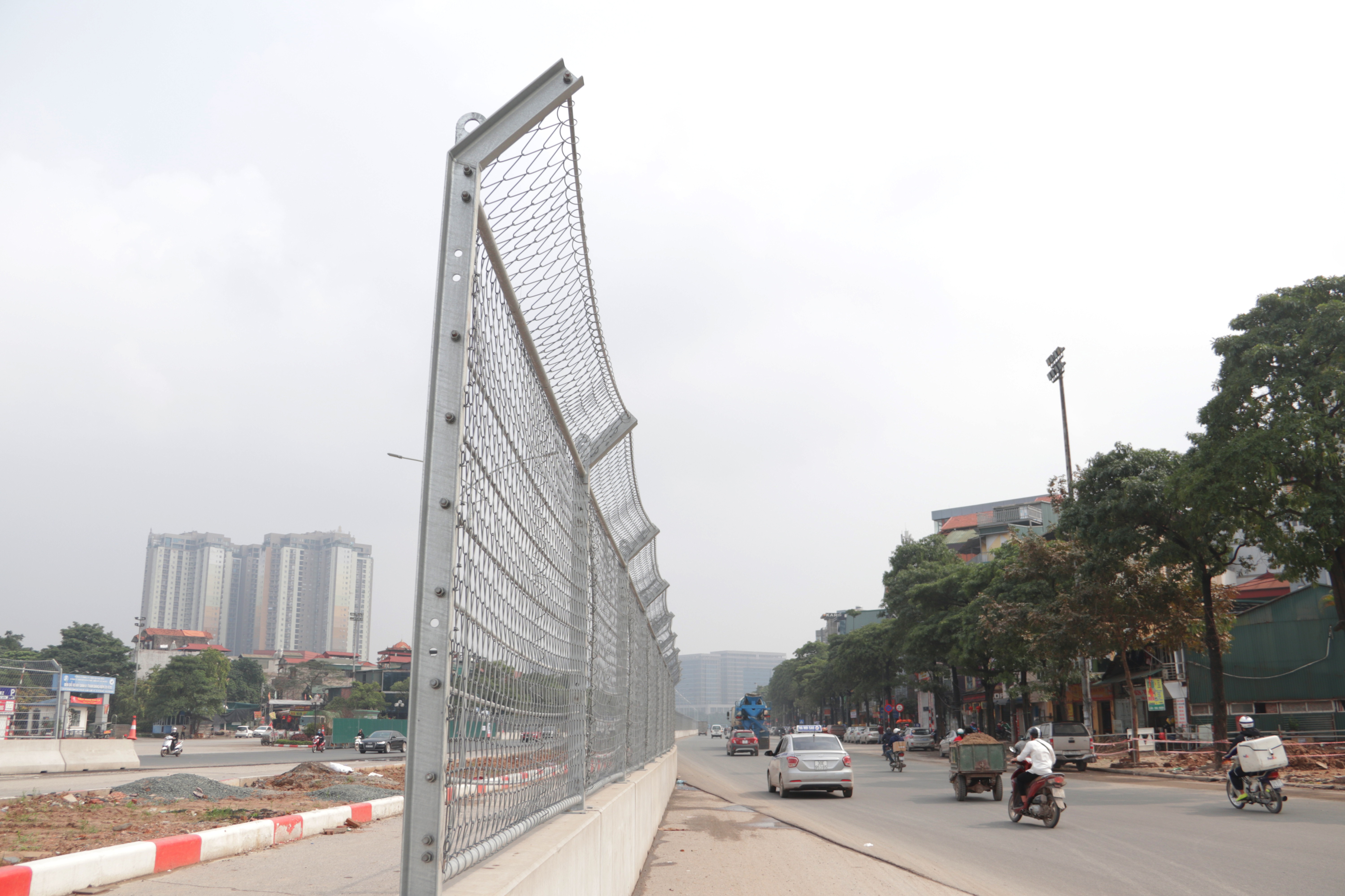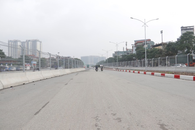 Dọc đường Lê Đức Thọ, hàng rao thép đã được lắp ghép ngăn đường.