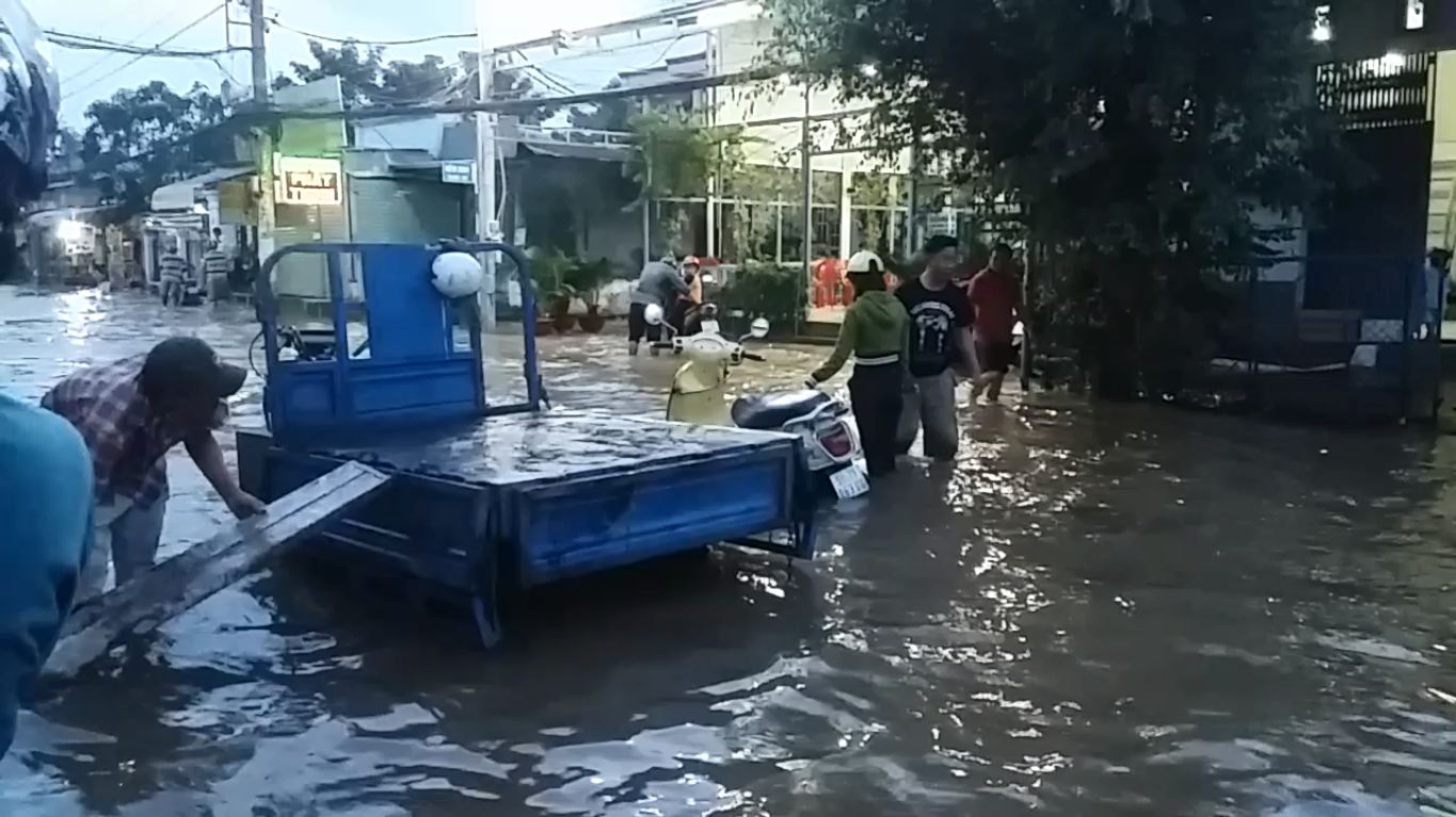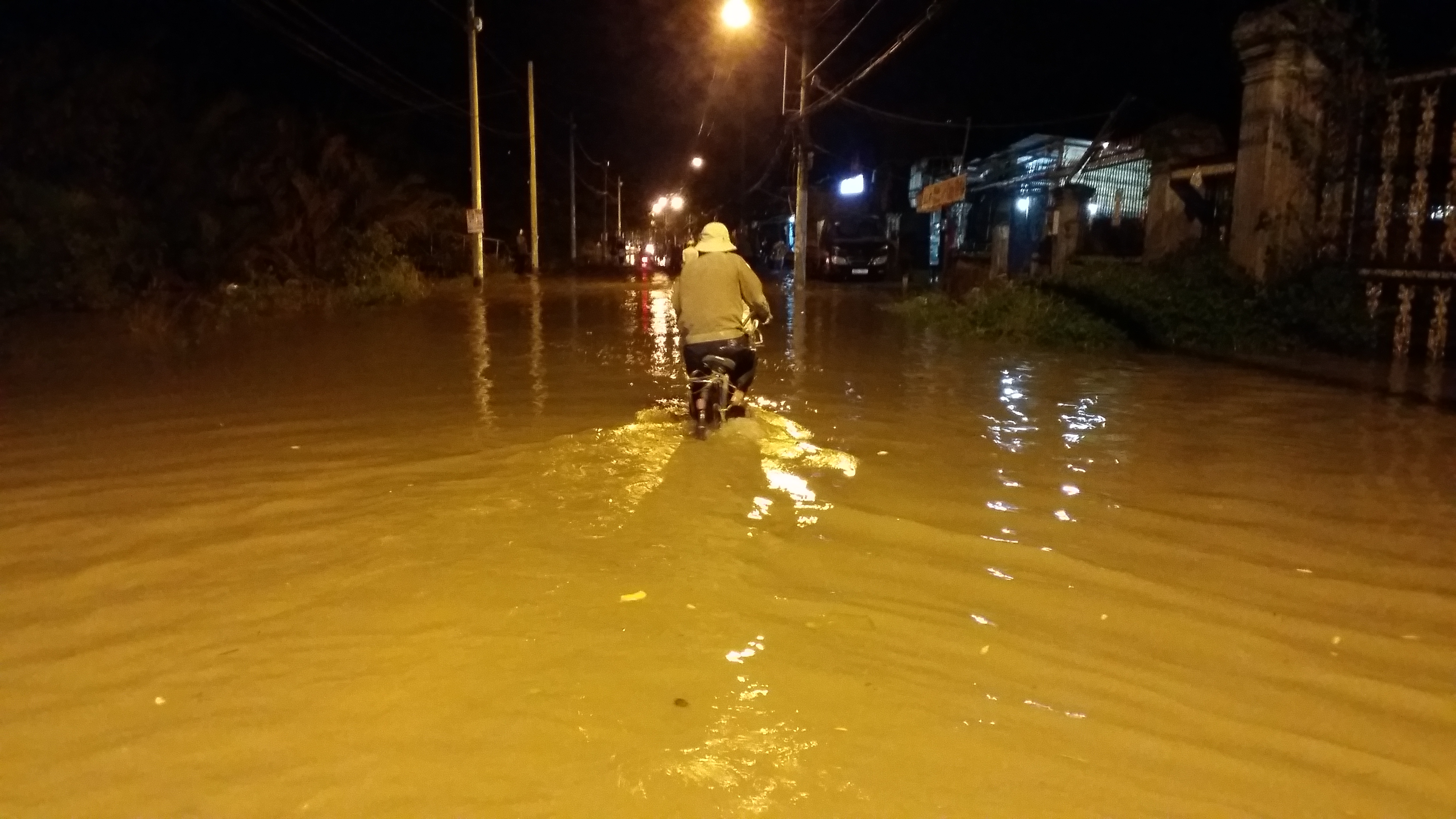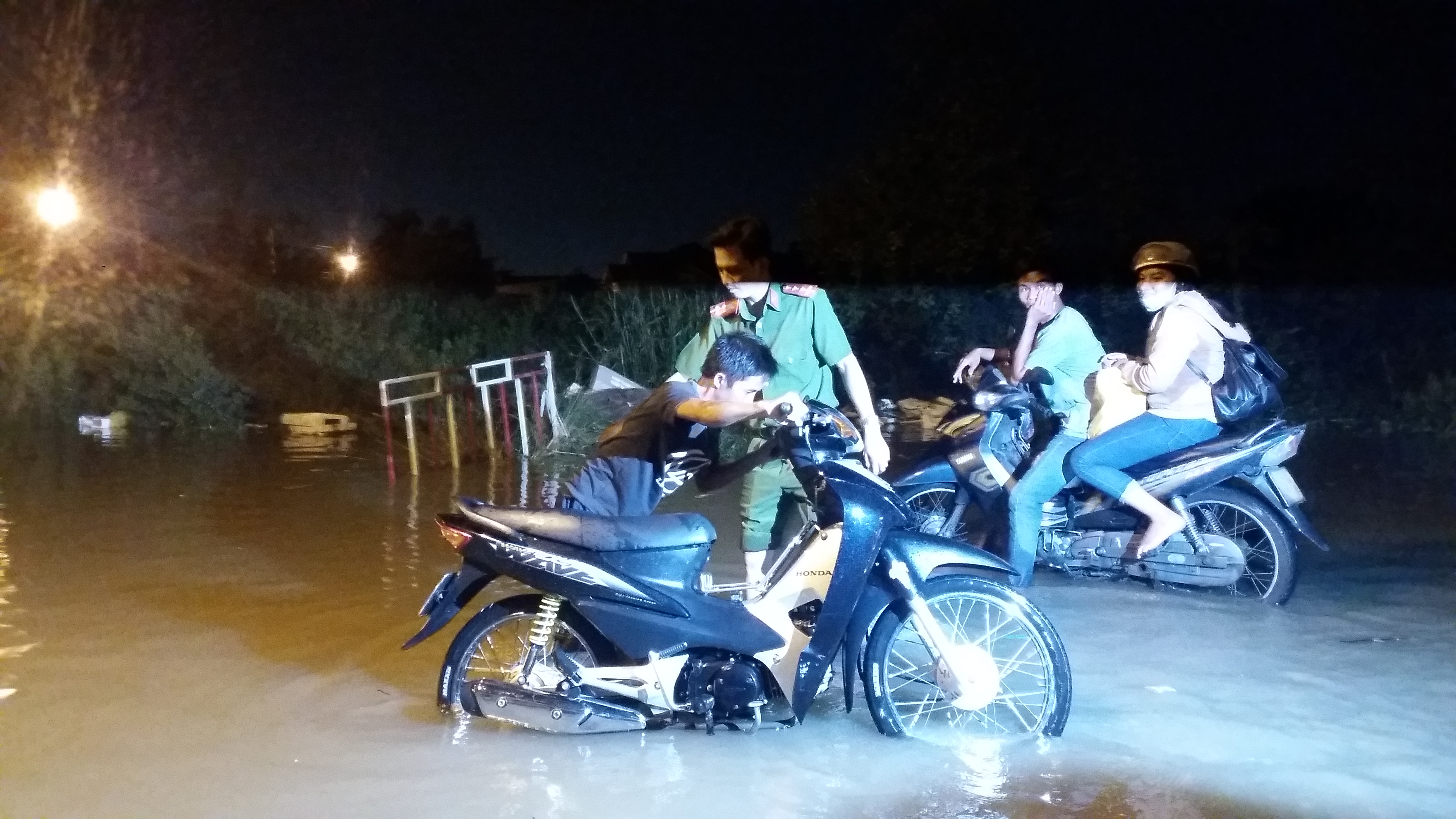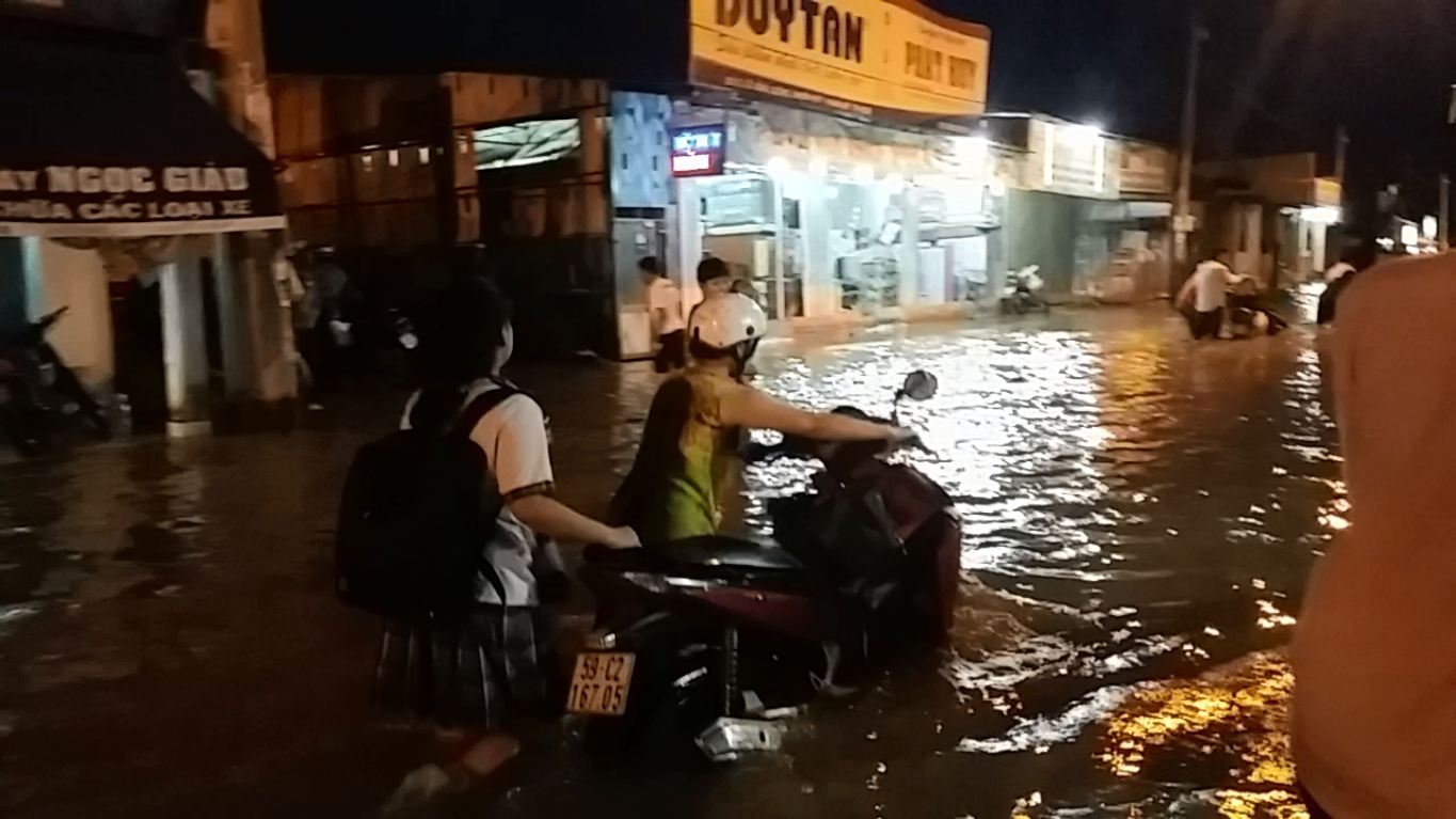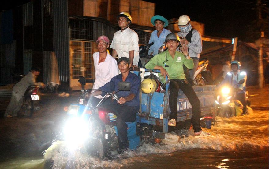 Theo ghi nhận của PV, triều cường bắt đầu dâng từ 16h30 đến khoảng 21h mới rút khiến người dân phải lội nước về nhà. Các phương tiện đi lại chết máy nằm la liệt.
