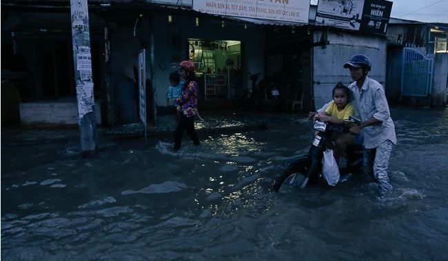 Theo Đài khí tượng thủy văn khu vực Nam Bộ, đỉnh triều đạt 1,66 m tại trạm Phú An và 1,68 m tại trạm Nhà Bè (cao nhất từ đầu năm) khiến các vùng trũng thấp TP.HCM (trong đó nặng nhất là huyện Nhà Bè) bị úng nặng.