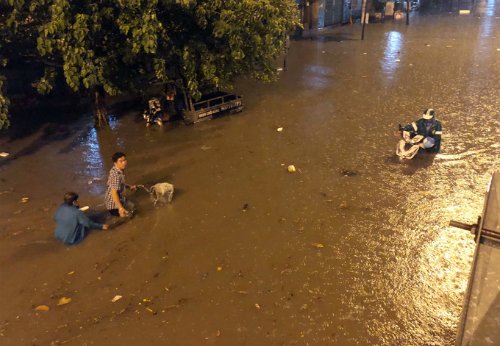 Đường Nguyễn Hữu Cảnh bị ngập sâu sau trận mưa lớn đêm 1/6. Ảnh: Duy Trần.