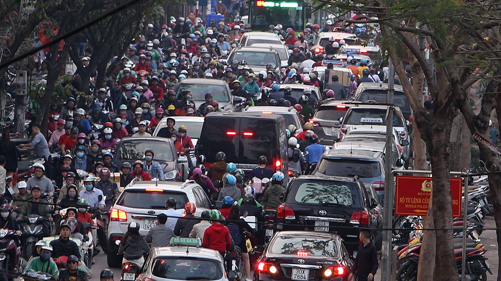 Đường phố Hà Nội đông đúc bất kể giờ giấc.
