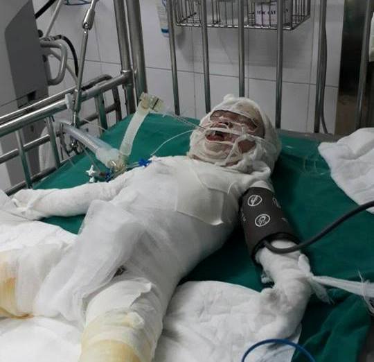 Sau khi sơ cứu, Bệnh viện đa khoa huyện Quỳnh Lưu đã chuyển bé Linh ra Viện bỏng Quốc gia để tiếp tục điều trị. Tại đây, các bác sĩ chẩn đoán bệnh nhi bị bỏng toàn thân với tỉ lệ 86%, bị bỏng lưỡi, dạ dày và nguy cơ bị hỏng mắt.
