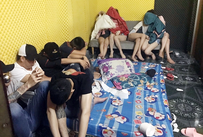 Tại đây, Cảnh sát phát hiện 61 nam nữ trong 6 phòng của khách sạn đang có biểu hiện “phê” ma túy.
