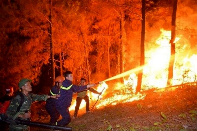 Hiện, thời tiết nắng nóng cộng thêm đó là gió Lào thổi rất mạnh, trong lúc đó khu vực xảy ra đám cháy chủ yếu là rừng thông lâu năm, rất dễ cháy, nên lực lượng chống cháy đang khẩn trương dập lửa.