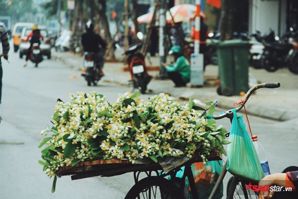 Trên đường phố Hà Nội những gánh hoa bưởi trắng muốt tỏa hương nồng nàn.