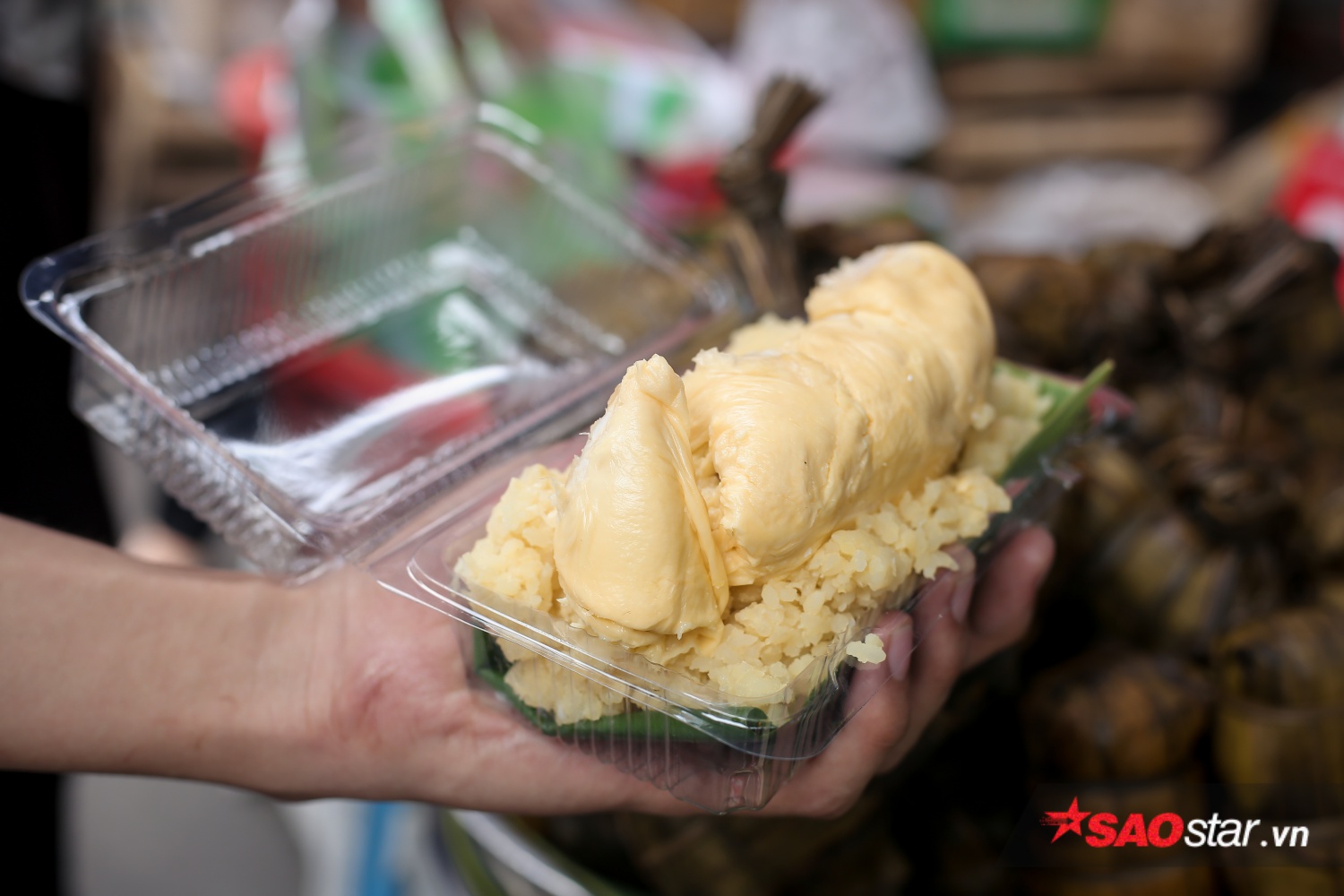 Gánh xôi đầy múi sầu riêng siêu to khổng lồ vô cùng bắt mắt.