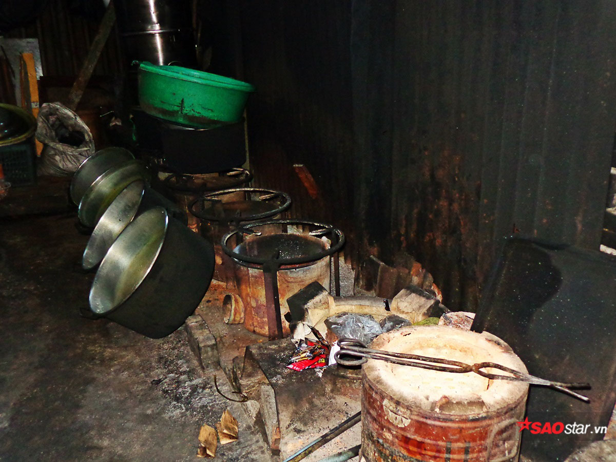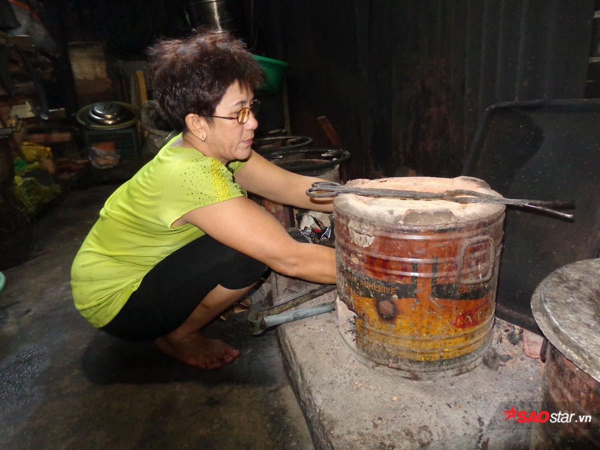Xôi của cô Ý được nấu bằng bếp than.
