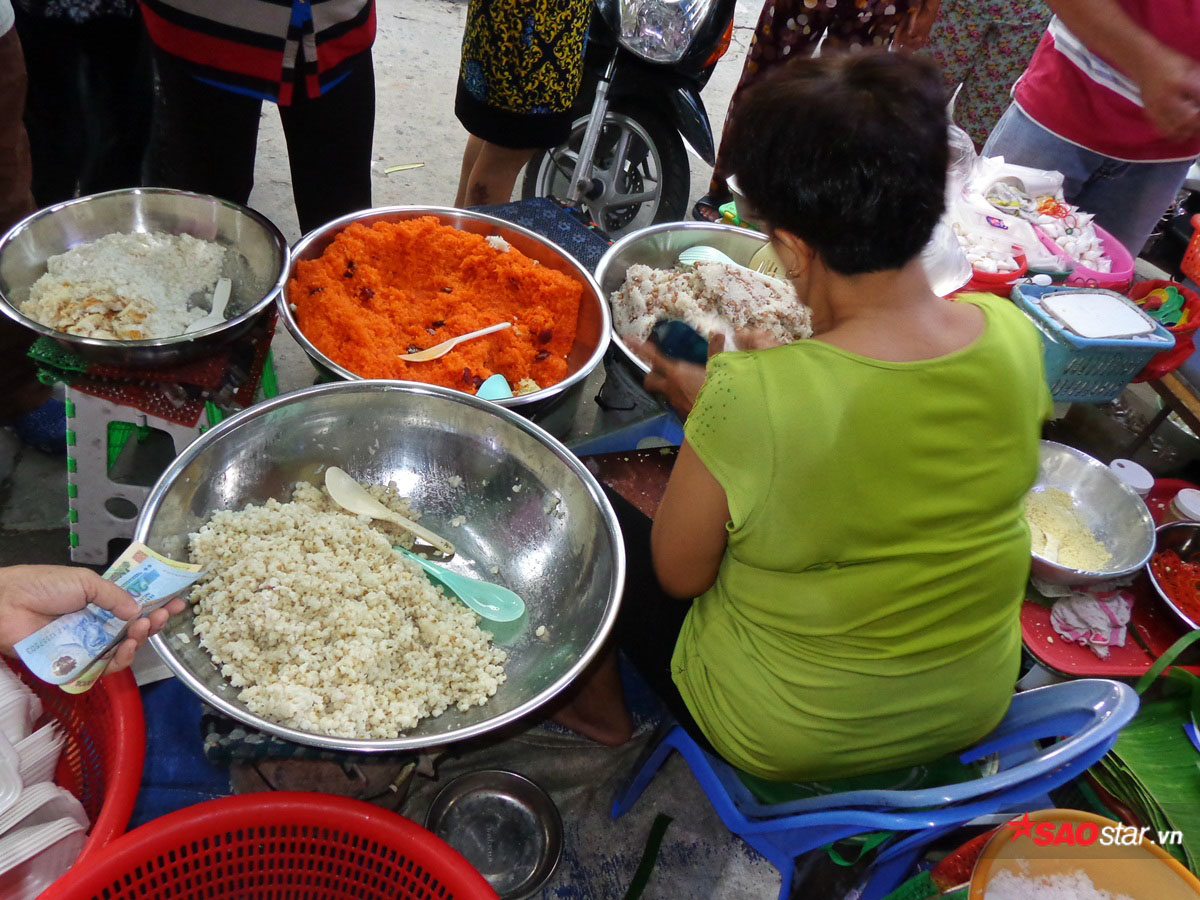 Vừa bán xong ở chợ, cô lại lật đật trở về chuẩn bị mẻ xôi mới.