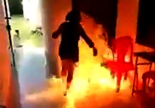 Tại đây, Bắc bất ngờ lấy can xăng đổ lên cả người vợ và người mình rồi lấy bật lửa để đốt. Tuy nhiên, chiếc bật lửa bị ướt nên không cháy. Ngay sau đó, chị Anh vùng chạy ra ngoài kêu cứu thì bị Bắc cầm dao phát truy đuổi. Trong lúc hoảng loạn, chị Anh né tránh và giơ hai tay lên đỡ rồi bị vết chém sượt gây thương tích ở đầu, tai và 2 ngón tay bị chém đứt lìa.