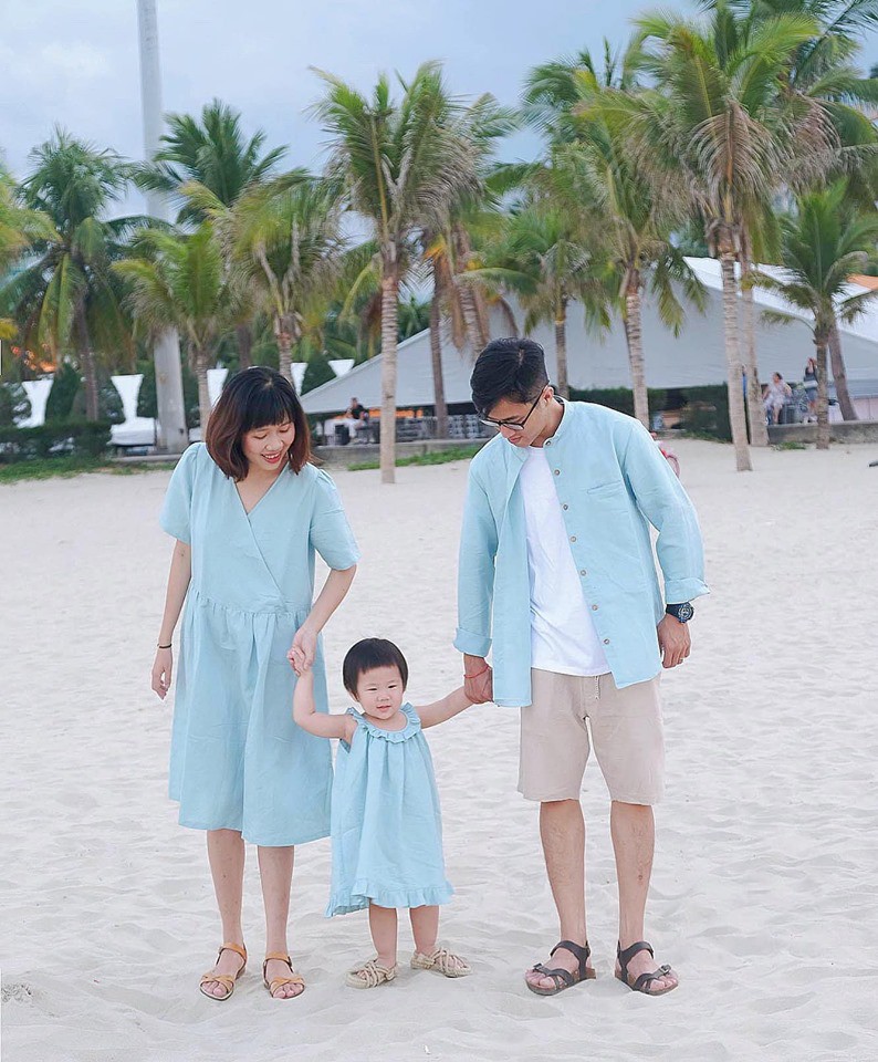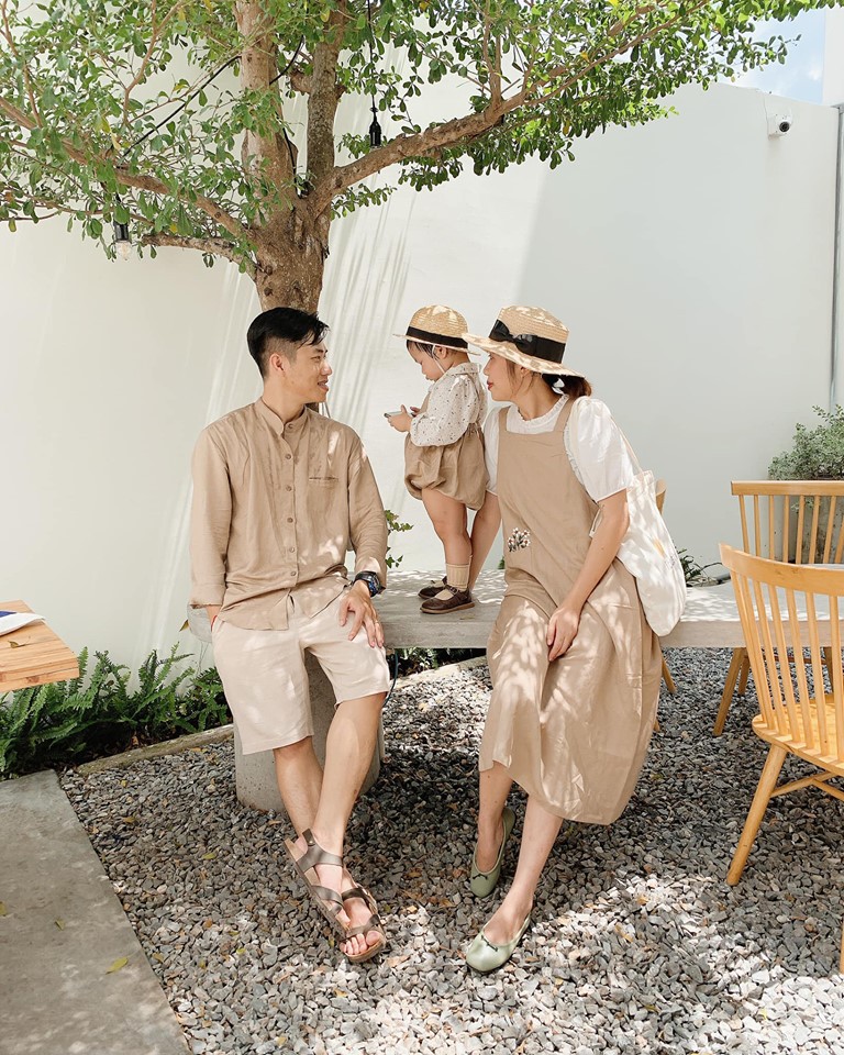 Ở nhà, anh Hiển và chị Linh có mở một cửa hàng quần áo thời trang tự thiết kế bằng vải linen. Công việc này không liên quan gì đến du lịch nhưng nó giúp gia đình nhỏ này có được những bộ cánh đồng điệu khiến ai cũng phải ghen tị khi xem bộ hình.