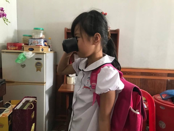Bé Phương Anh bị cô giáo phạt uống nước giẻ lau bảng.