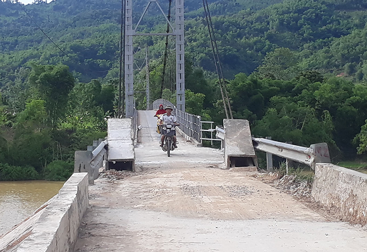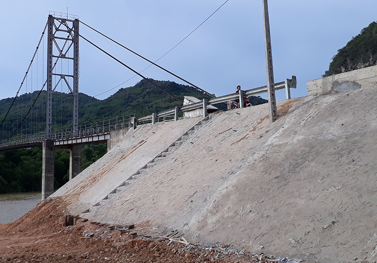 Hai tháng trước, đơn vị thi công bắt đầu sửa chữa cầu, tổng kinh phí cho dự án hơn 8,8 tỷ đồng, chủ yếu từ ngân sách tỉnh và các nguồn khác. Việc sửa chữa mố cầu gặp nhiều khó khăn do hàng nghìn m3 đá mà trước đó lực lượng chức năng đã đổ xuống hiện trường để chống xói lở. Đơn vị thi công phải bốc bớt đá khỏi hiện trường mới có thể đóng cọc ván thép, bảo vệ công trình.