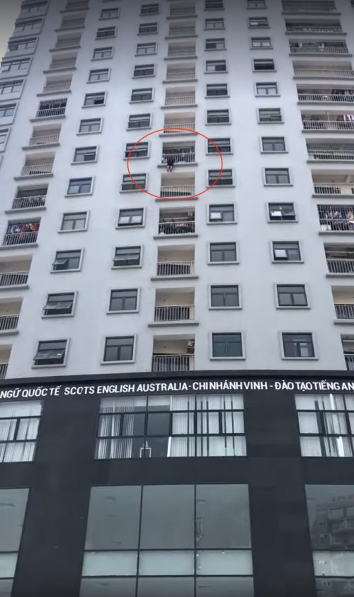 Hình ảnh người phụ nữ “treo” mình trên tầng 10 của khu chung cư