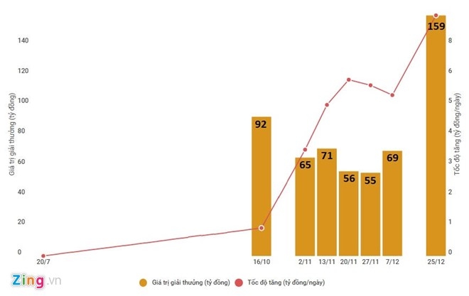Với việc giải độc đắc hơn 159 tỷ đồng được trúng, số tiền thưởng mà đơn vị phát hành xổ số tự chọn dành để trao thưởng cho các giải đặc biệt đã lên tới 569 tỷ đồng.