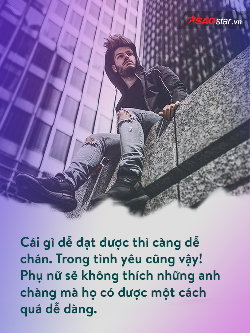 Cái gì dễ đạt được thì càng dễ chán. Trong tình yêu cũng vậy! Phụ nữ sẽ không thích những anh chàng mà họ có được một cách quá dễ dàng. Trong khi đó, trai tồi thường bản lĩnh, thậm chí họ để cho cô gái theo đuổi mình suốt một thời gian dài mới có thể nhận lời.