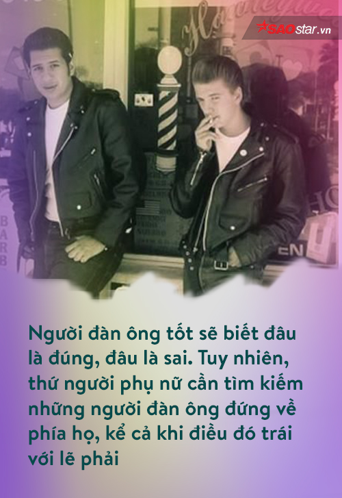 Người đàn ông tốt sẽ biết đâu là đúng, đâu là sai; và dĩ nhiên họ luôn đứng về phía điều đúng kể cả điều đó là vô lý và cứng nhắc. Trong khi đó phụ nữ lại cần tìm kiếm những người đàn ông đứng về phía họ, kể cả khi điều đó trái với lẽ phải. Đó là lý do phụ nữ thích lựa chọn những anh chàng tồi, sẵn sàng phá vỡ quy tắc để bảo vệ họ.