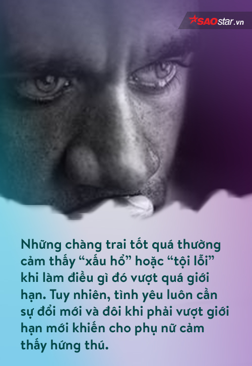 Những chàng trai tốt quá thường cảm thấy “xấu hổ” hoặc “tội lỗi” khi làm điều gì đó vượt quá giới hạn. Tuy nhiên, tình yêu luôn cần sự đổi mới và đôi khi phải vượt giới hạn mới khiến cho phụ nữ cảm thấy hứng thú. Đàn ông “tồi” luôn tin rằng ai cũng chỉ sống một lần trong đời, vì thế họ tin tưởng vào bản thân và sống hết mình với mọi cuộc vui.