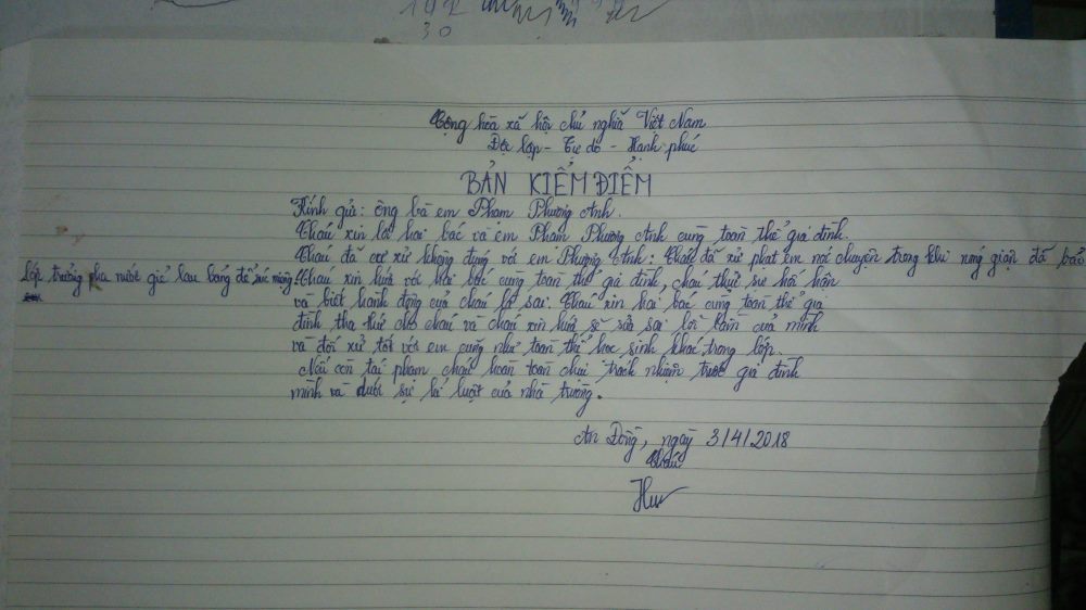 Bản kiểm điểm của giáo viên chủ nhiệm. Ảnh VTC
