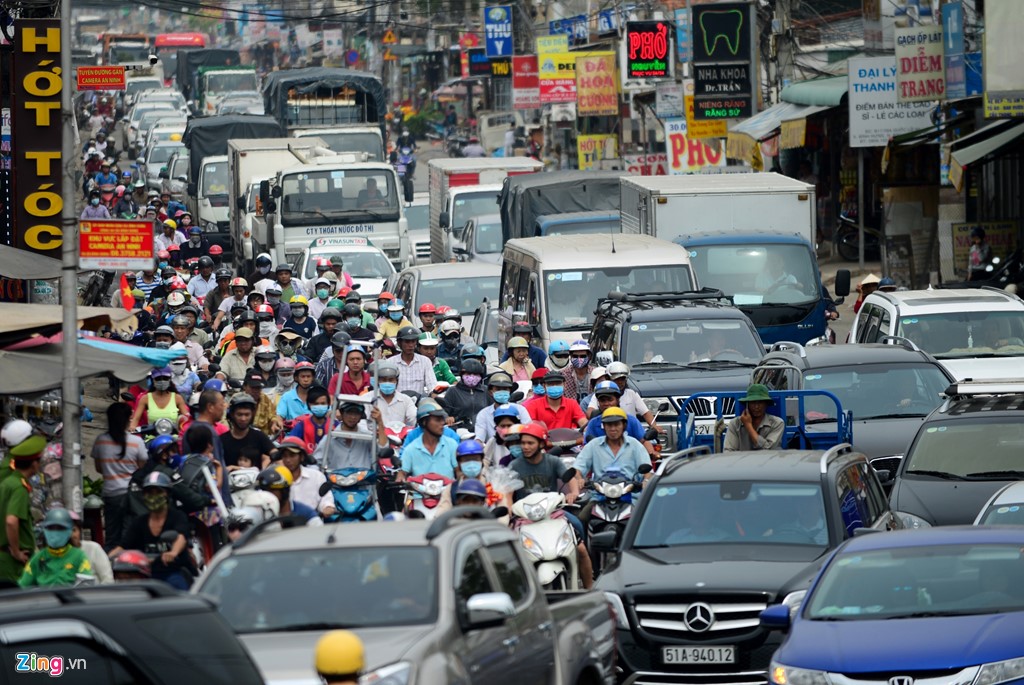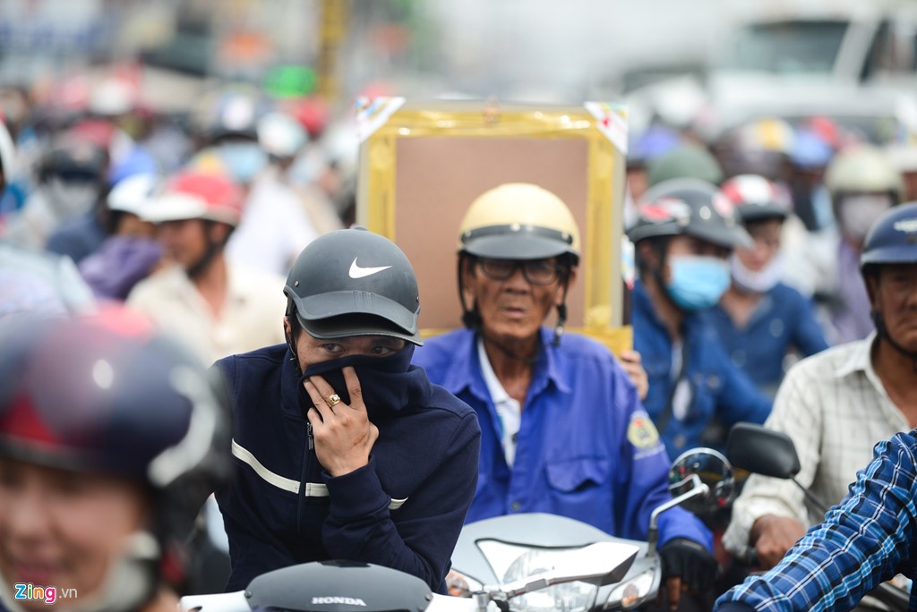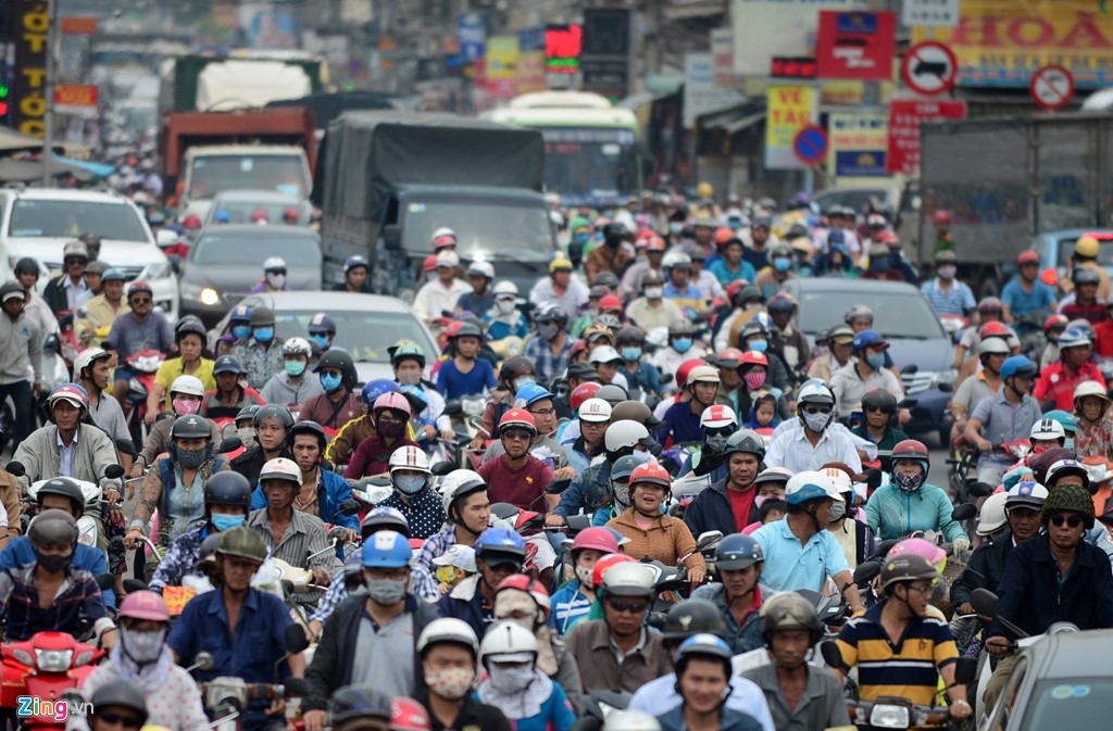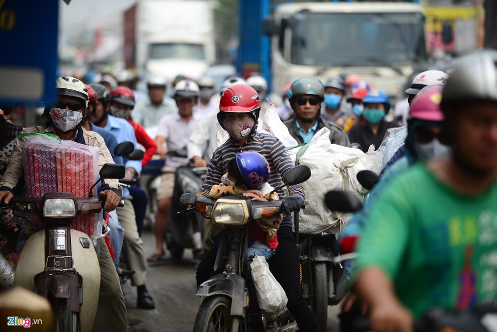 Người dân ngộp trong cảnh kẹt xe, khói bụi hàng giờ đồng hồ với quãng đường dài hàng km.