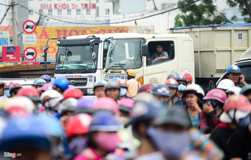 Do đây là trục đường kết nối đi các địa phương nên xe tải dịp này hoạt động tấp nập. Một người dân sống ở khu vực này khẳng định: “Nhiều lần ùn tắc nhưng kéo dài tới 8 giờ như hôm nay là chưa từng thấy”.