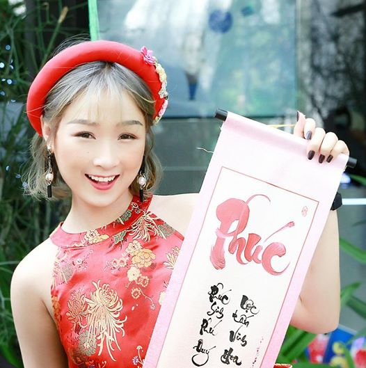 Cô nàng trà sữa Jun Vũ cực kì xinh đẹp với áo dài cách tân ngày Tết.