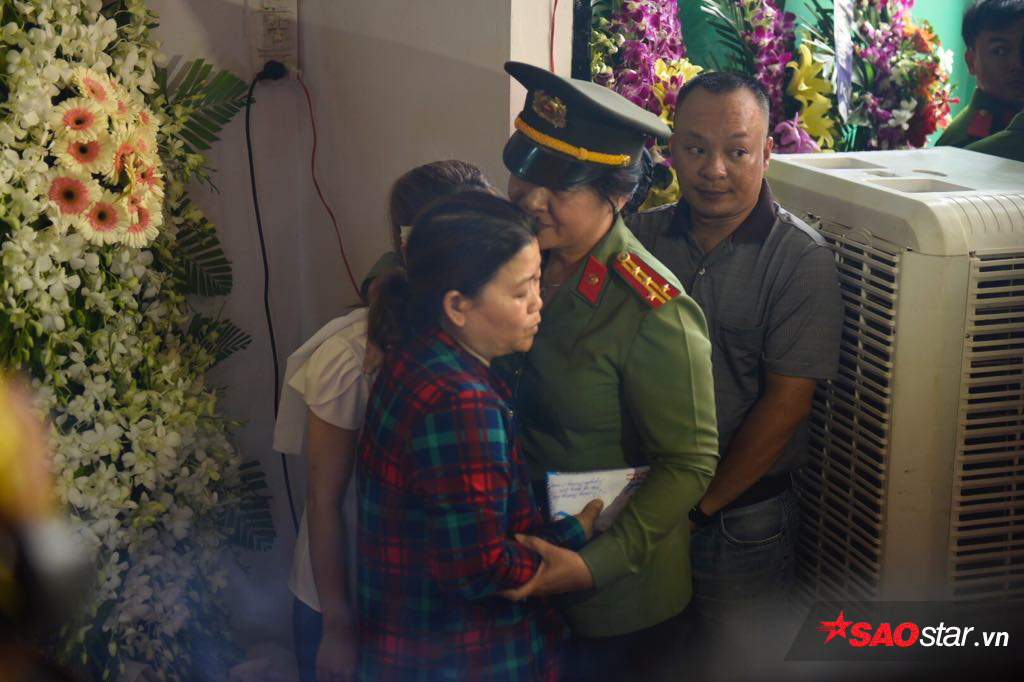 Chiến sĩ công an ôm lấy mẹ anh Nam để xoa dịu phần nào nỗi đau, nỗi mất mát quá lớn.