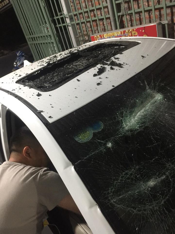 Chiếc xe ô tô bị đập hư hỏng nặng.