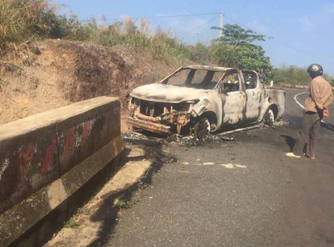 Sau đó, ông Minh lấy 3 can dầu, 1 can xăng (mỗi can 30 lít) đã chuẩn bị sẵn để đốt xe. Khi gây án xong, Minh đi bộ về nhà người dân mà mình gửi xe máy trước đó, cách hiện trường khoảng 1,5km, để lấy xe rồi chạy trốn xuống TP. Đồng Xoài, tỉnh Bình Phước. Tại đây, Minh đã thuê nhà trọ để ở tạm.