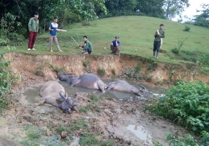 3 con trâu bị sét đánh chết chiều 6/5 tại huyện Quế Phong. Ảnh: PV.