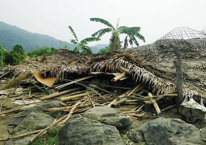 Một nhà dân tại xã Quang Phong bị sập. Ảnh: PV.