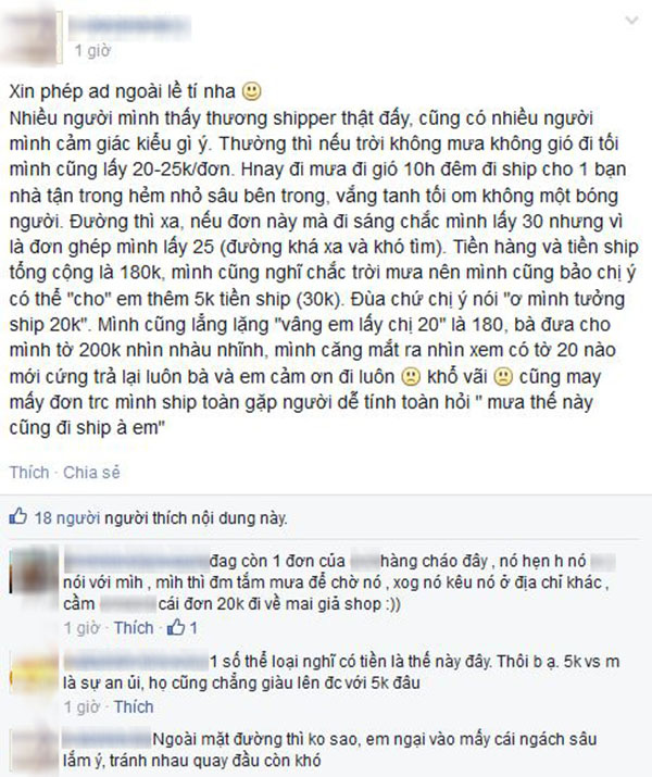 Bài viết về anh shipper đầy nghị lực nhận được sự chia sẻ của nhiều cư dân mạng