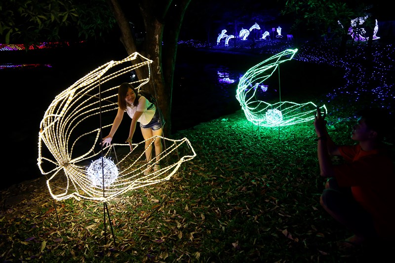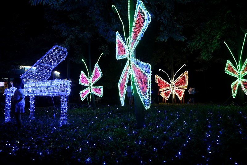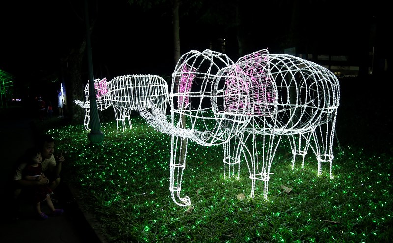 Không gian rộng lớn của Thảo Cầm Viên sáng rực lên trong đêm bởi hàng triệu bóng đèn led đủ màu sắc, được cài đặt hiệu ứng lung linh biến đổi cực bắt mắt.