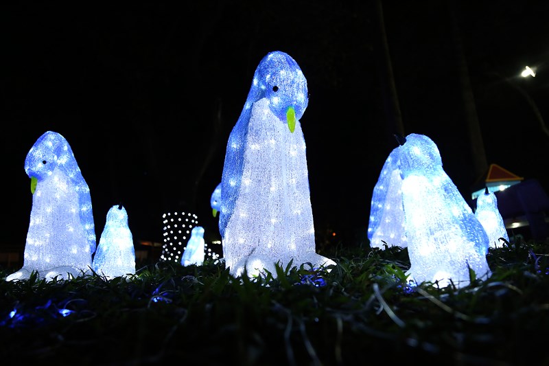 Những chú chim cánh cụt sáng bừng trong đêm nhờ hiệu ứng đèn Led.