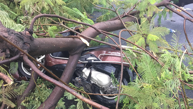 Theo ghi nhận của báo Dân Việt, mưa lớn kèm theo giông lốc còn làm cây xanh tại khu vực vòng xoay Công trường Mê Linh (phường Bến Nghé, quận 1) gãy ngã xuống đường đè trúng hai người đi xe máy. Hiện 2 người này đã được người dân đưa vào bệnh viện cấp cứu.