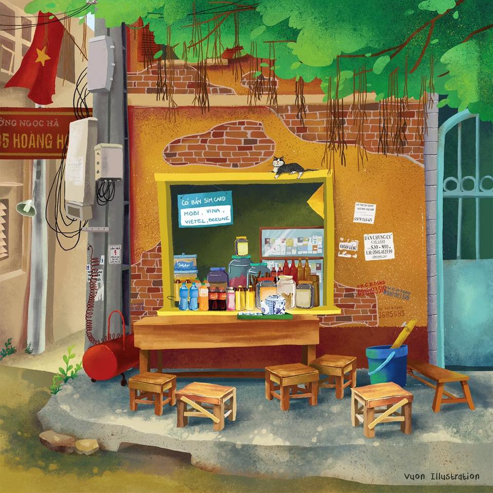 Hàng chè đầu ngõ ngày nay đã dung nạp thêm nhiều thứ mới mẻ như bánh mới, các loại nước ngọt sắc màu để phục vụ nhiều khách hơn. Nhưng dẫu thế nào, thì cái chất dung dị của nó vẫn luôn tồn tại mãi trong lòng mỗi người dân thủ đô. Cái thời mà họ chẳng cần internet hay smartphone, cứ hẹn nhau ở hàng chè quen, tụm năm tụm bảy có hàng bao nhiêu chuyện để nói. Nguồn: Vườn Illustration