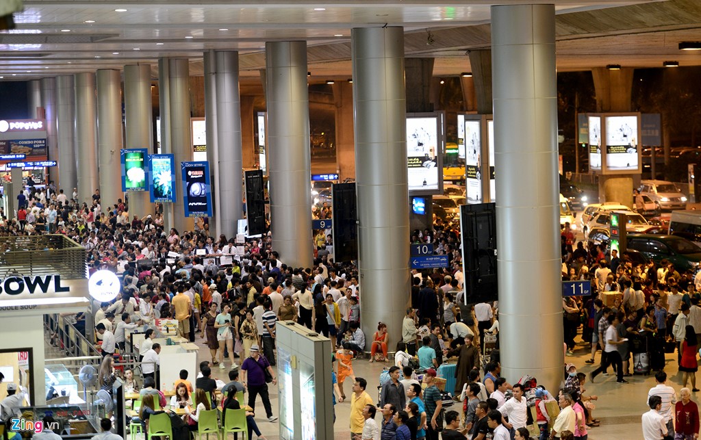 21h ngày12/1, hàng nghìn người tập trung trước sảnh ga đến, sân bay Tân Sơn Nhất, chờ thân nhân từ nước ngoài về ăn Tết.