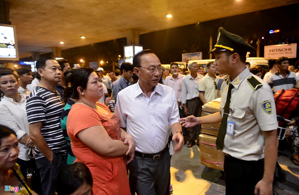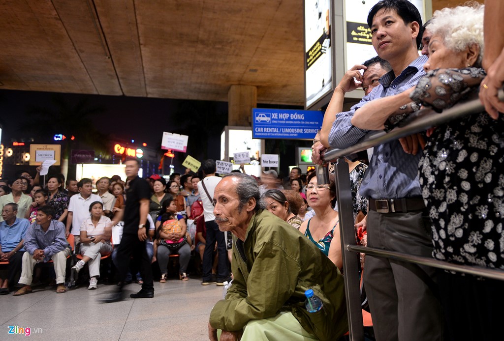 Ông Kim ngồi chờ anh trai từ Mỹ sẽ đáp xuống lúc 22h nhưng đợi mãi đến hơn 23h vẫn chưa thấy. “Quê tôi ở Bến Tre. Tôi bắt xe lên nhà anh ở huyện Hóc Môn từ chiều, đến 21h có mặt ở đây nhưng giờ cảm thấy khá mệt vì đợi chờ lâu quá”, người đàn ông 72 tuổi cho hay.