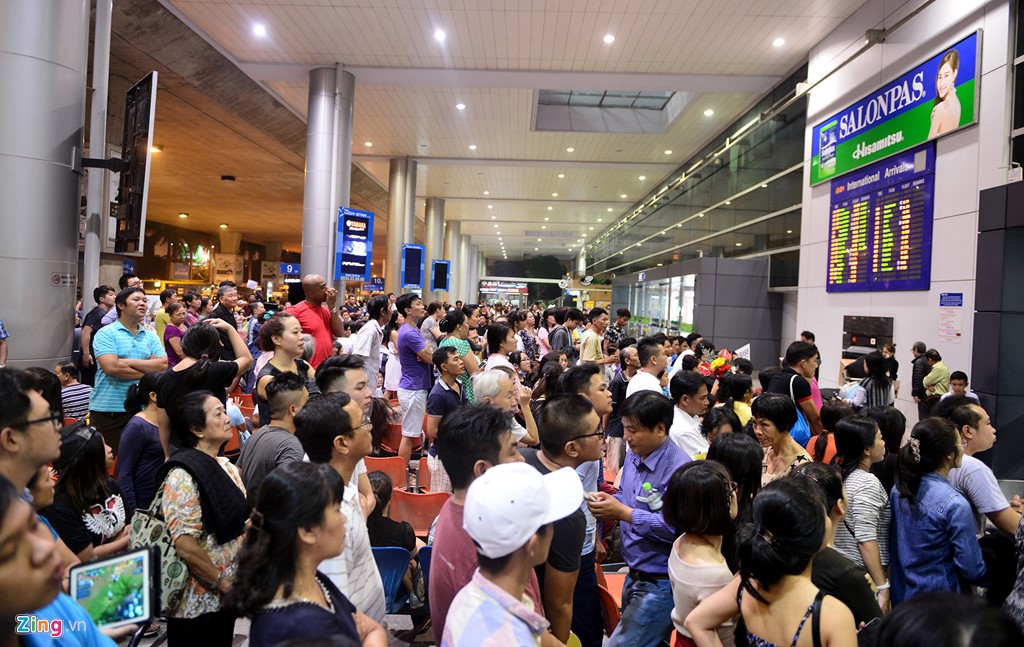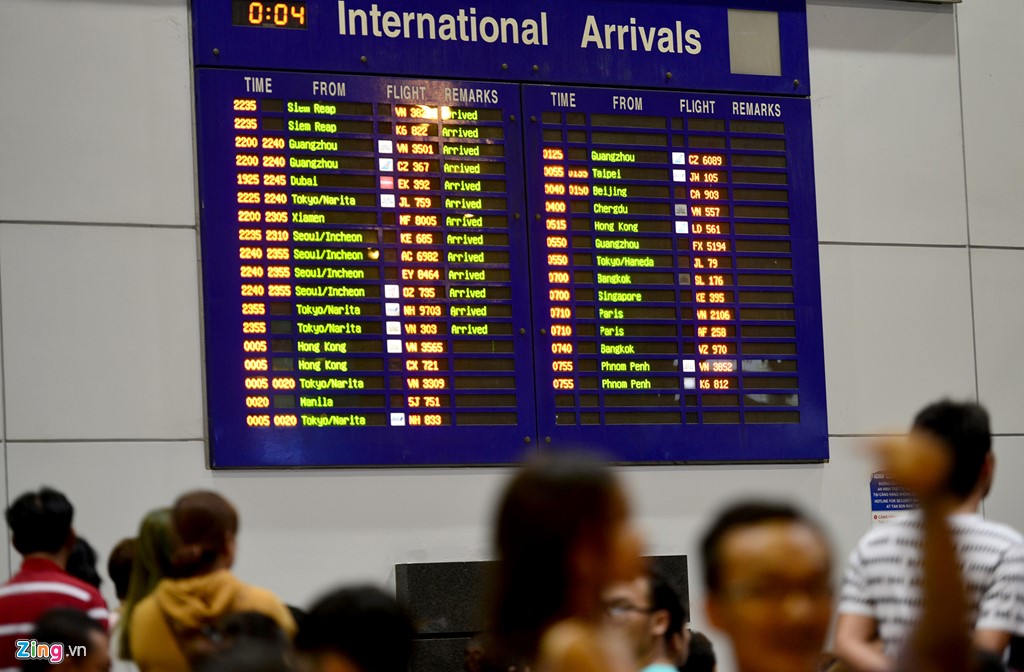 Chị Huyền, Việt kiều Mỹ, cho hay tuy chuyến bay đến đúng giờ nhưng vì đông người làm thủ tục, chờ lấy hành lý nên chị phải mất hơn một tiếng mới ra đến cửa đón.