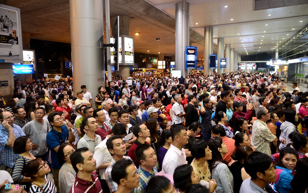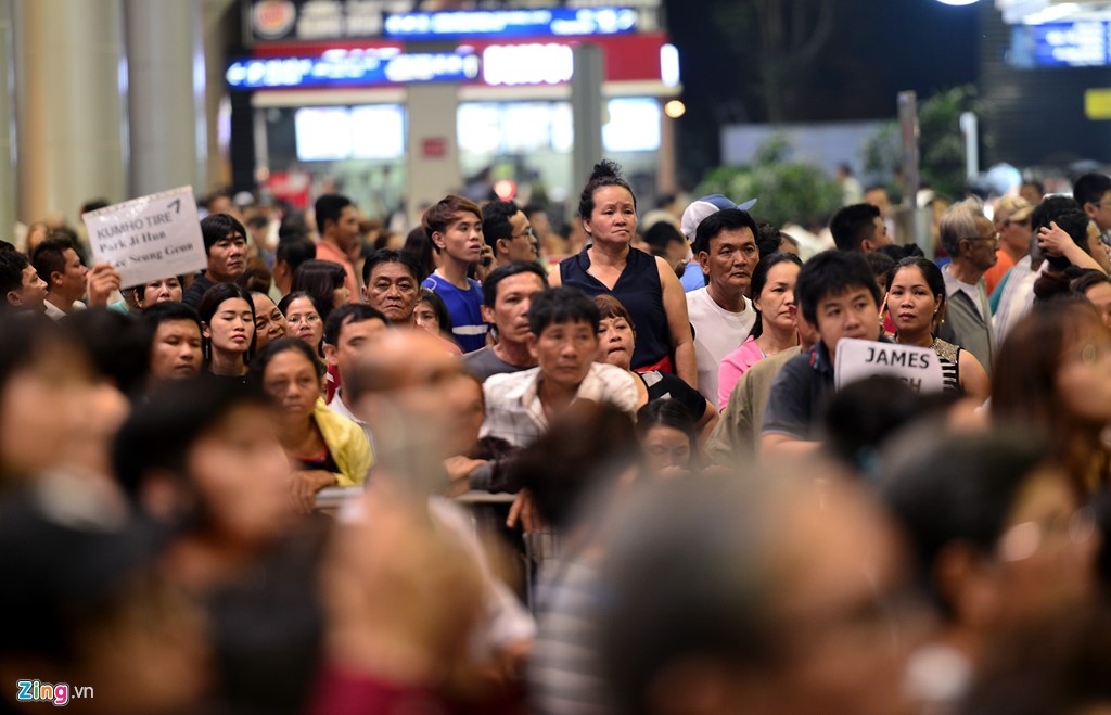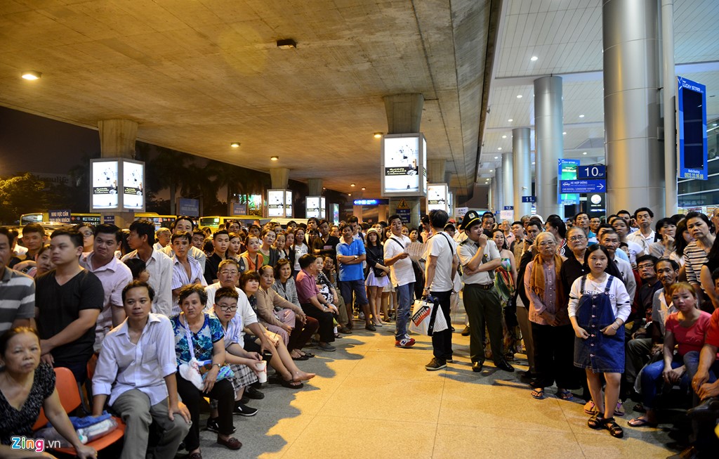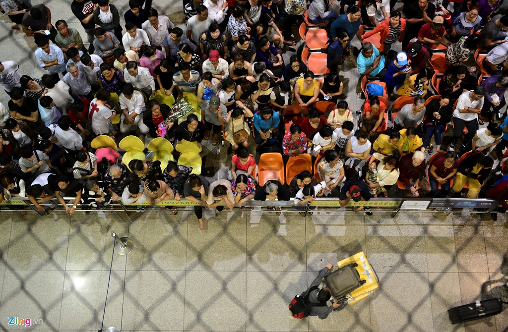 Hai bên hành lang cửa ra đông nghịt nhân thân Việt kiều và lao động ở nước ngoài đứng chờ. Các ghế ngồi không còn chỗ trống, nhiều người phải đứng ngóng từ xa.